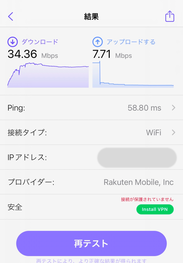 - 上り実測値:7.71Mbps